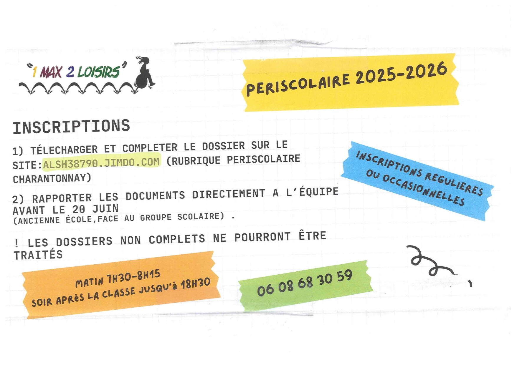 • INSCRIPTIONS 2025-2026 Accueil de loisirs périscolaires (garderie)