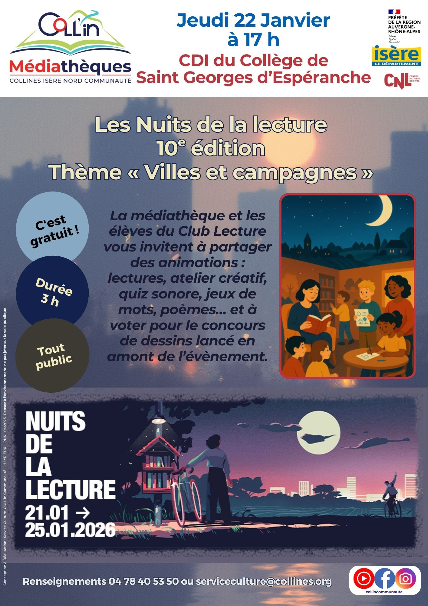 Renseignements : 04 78 40 53 50 / serviceculture@collines.org